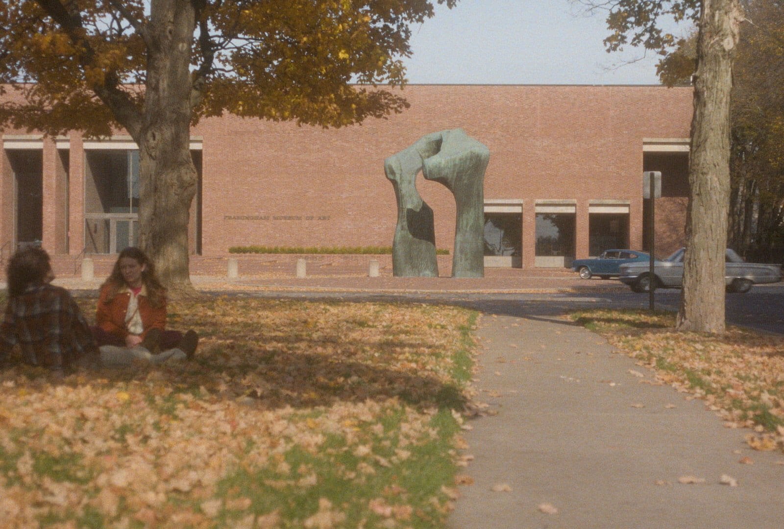 Henry Moore’s Large Arch was kept in-situ outside the Pei building, and features prominently throughout the film, as does Eliel Saarinen’s First Christian Church. The Framingham Museum of Art’s interior is an off-site warehouse designed by Reichardt’s production team, and the exterior scenes were shot in Columbus, Indiana; and Cincinnati, Ohio.